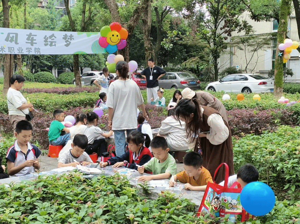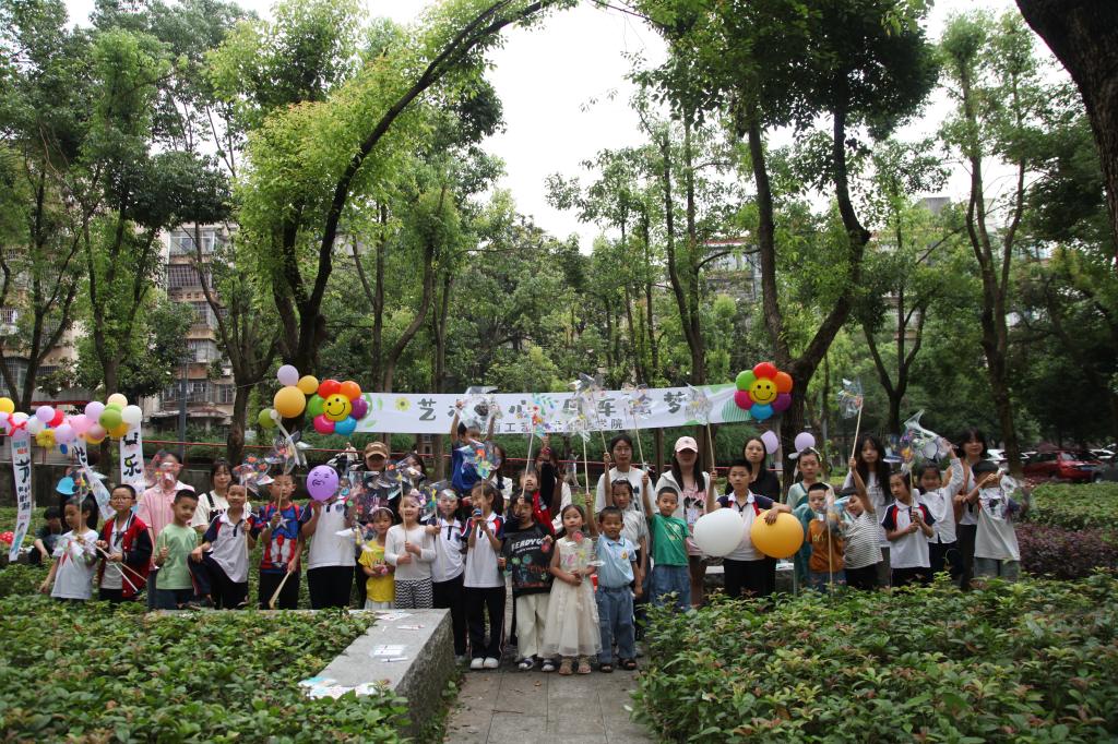 5月31日下午,学生工作部心理健康教育与素质发展中心在怡心馆前坪举办“艺术美心,风车绘梦”社会心理服务活动,近百名学生和小朋友参加活动。