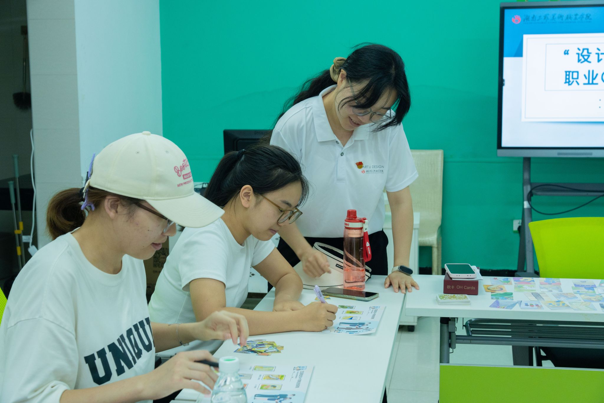 夏晨结合OH卡选择与画布布局,为学生提供个性化解读:“卡牌没有标准答案,但它像一面镜子,照见我们未曾言说的职业期待。”在她的引导下,学生将零散感悟转化为具体行动计划,有人决定尝试跨专业实习、有人计划考取技能证书,还有人决定重新思考自己的职业目标。