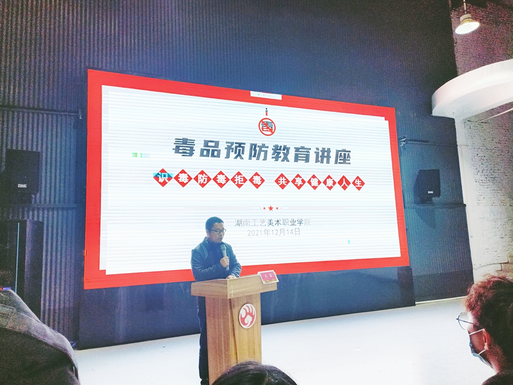 12月14日,学校开展了“识毒防毒拒毒 共享健康人生”为主题的禁毒知识专题讲座,讲座由益阳市公安局禁毒协会禁毒讲师团团长王竞主讲。学工部组织百余名学生在完美世界现场聆听,各学院组织全体学生通过手机端同步听取讲座。讲座由学工部(处)副部(处)长陈欣欣主持。