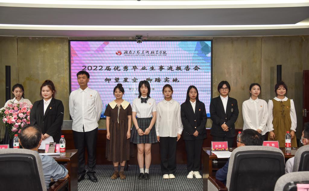 报告会上,何曙霞等9名2022届优秀毕业生代表先后登台汇报了各自的先进事迹,整个现场气氛热烈,赢得了师生们的阵阵掌声。他们从大学三年经历出发,结合专业学习、参与学团组织管理、参加各类比赛、社团活动、社会实践志愿服务等诸多方面进行了心得分享。每一个动情的故事都深深打动了现场听众的心,为学弟学妹们上了一堂非常生动的思想政治课。