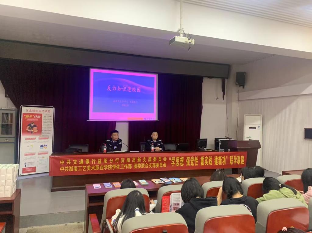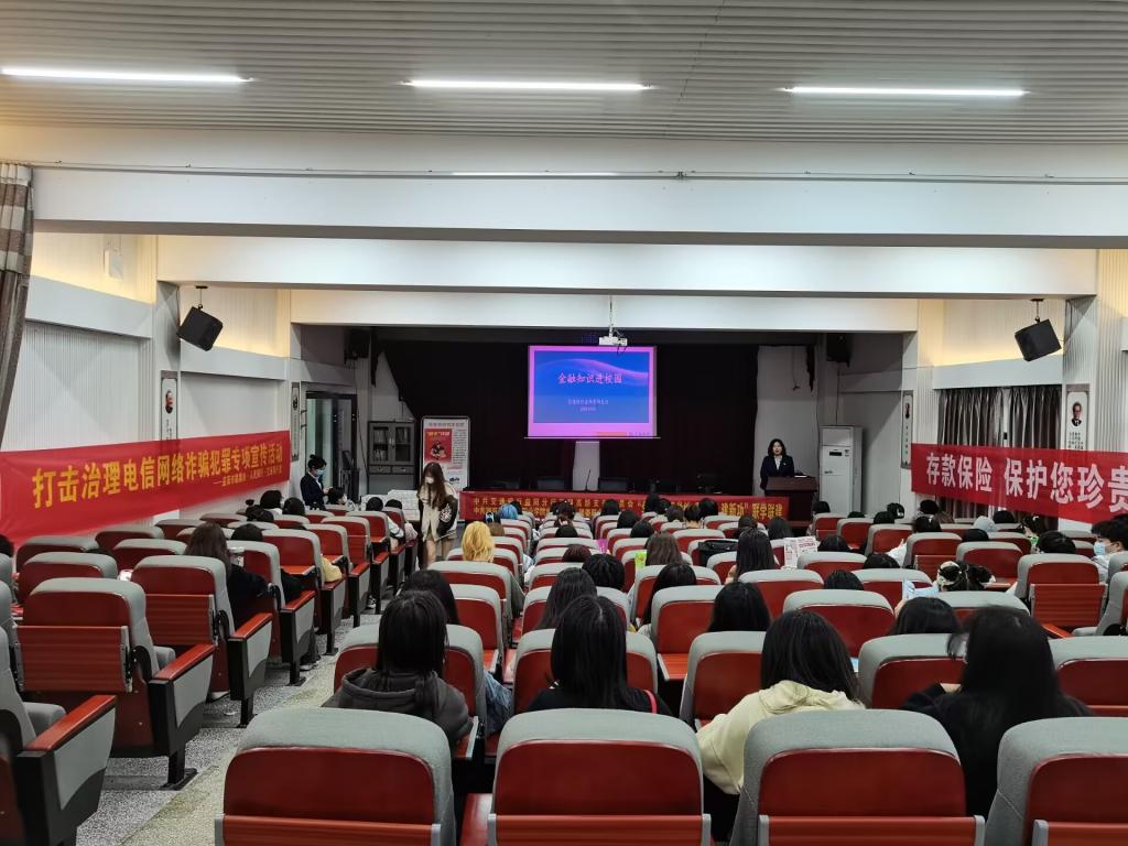 市反诈中心副主任王伟结合具体数据和“两卡”、“刷单”、“杀猪盘”等多个真实案例向学生详细分析了当前电诈犯罪的特点、类型与危害,重点强调了保护个人隐私重要性及防范电信网络诈骗的方法。交通银行益阳资阳支行营运主管何苗向学生讲解“断卡行动”及“帮信罪”的相关知识,同时结合真实案例阐述出租、买卖“两卡”的危害。150余位参与讲座的学生认真聆听,纷纷表示会增强反诈骗意识、提高反诈骗能力。
