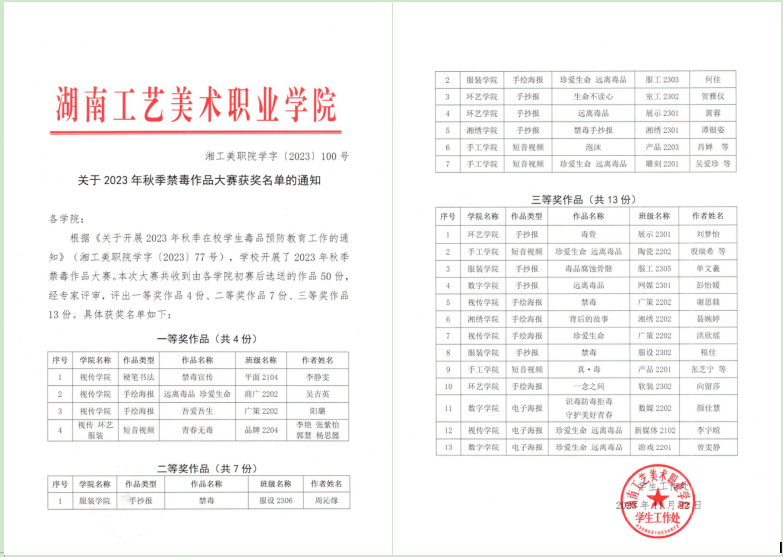 2023年秋季禁毒作品大赛获奖名单