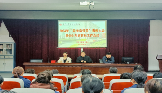 新学期伊始,为表彰在学校第一届”最美宿管员”评选活动中获奖的宿管员,以及确保新学期宿舍管理服务工作有序进行,保障学生们生活舒心与住宿安全,学生工作部于3月7日召开2023年“最美宿管员”表彰大会暨2024年宿管员工作会议,学生工作部副部长陈欣欣出席会议。学生工作部夏子涵老师、学校物业公司经理、主管、宿舍管理员等参加会议,会议由学生工作部老师李慧锋主持。