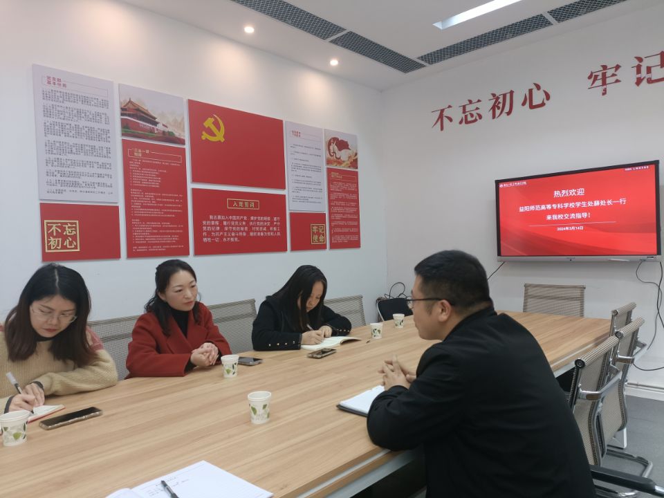 3月14日下午,益阳师范高等专科学校学生处副处长薛毅一行就学生工作来我校调研交流,学生工作处副处长陈欣欣出席交流座谈会。