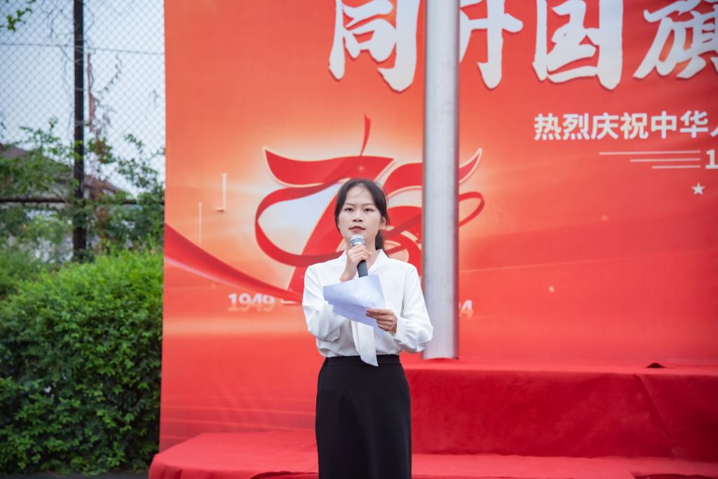 最后,师生们挥舞着国旗,伴随着《歌唱祖国》悠扬的旋律同唱一首歌,为伟大祖国送上最诚挚的祝福,将爱国之心凝聚在一起。在浓浓爱国情中,全体师生和国旗来了张大大的合影。