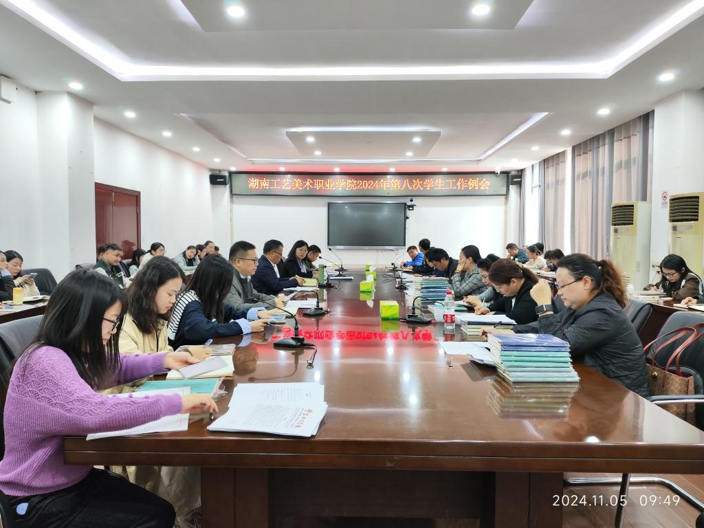 11月5日上午,学校在致美楼201会议室召开2024年第八次学生工作例会。学校副校长彭泽立出席并主持会议,学生工作部、团委负责人,各二级学院党总支书记、副书记,学工部、团委全体人员及全体辅导员参加会议。长沙基地与会人员参加视频会议。