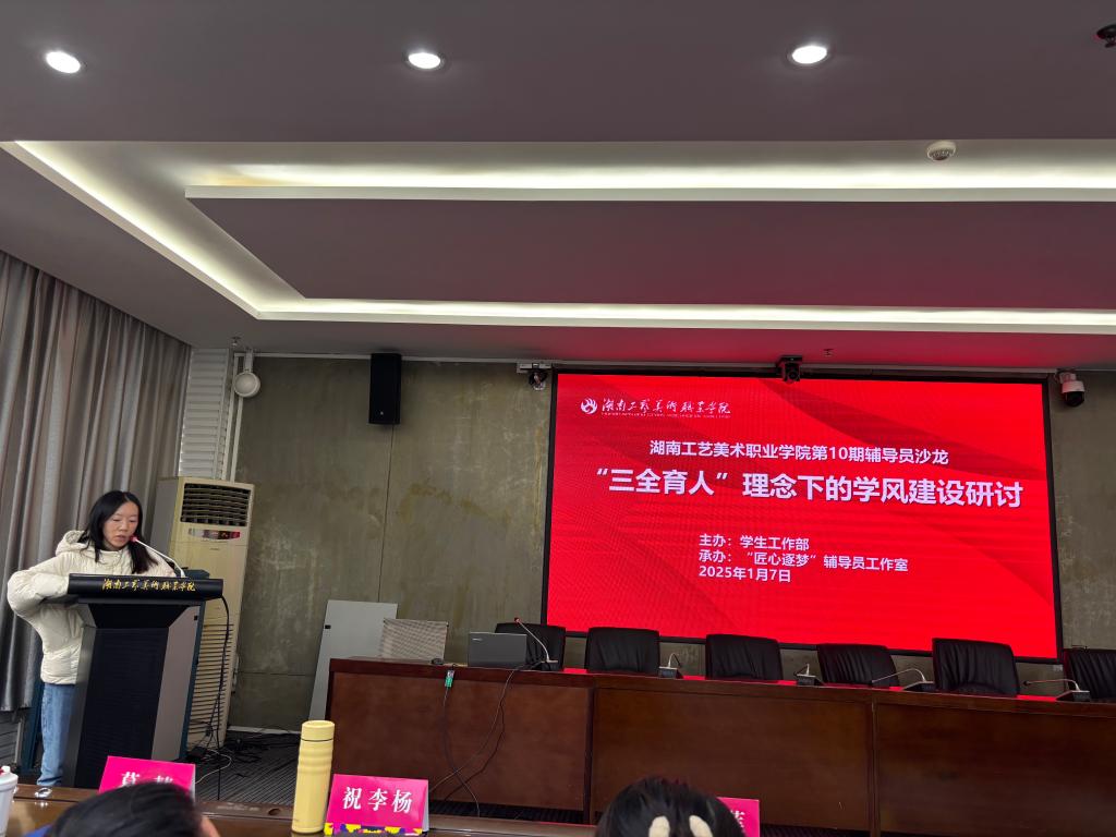 匠心筑梦启未来,优良学风助扬帆。为了进一步落实“三全育人”理念,加强学风建设,总结学风建设成绩,促进学生全面发展,提升人才培养质量,2025年1月7日,学校在致美楼206报告厅成功举办了第10期“三全育人理念下的学风建设研讨”辅导员沙龙活动暨2024年秋季学期“学风建设月”总结会。