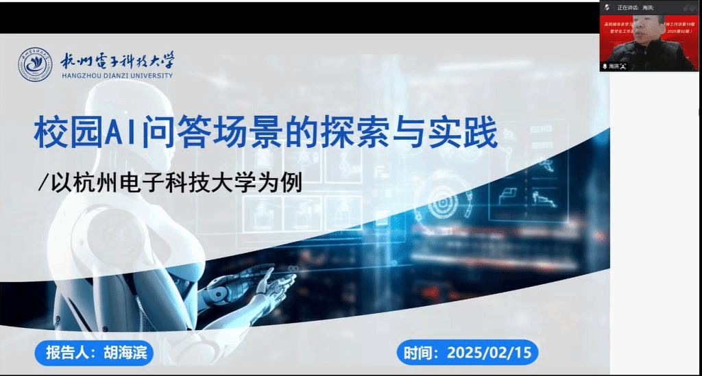 杭州电子科技大学圣光机联合学院党委书记胡海滨做了题为“校园AI问答场景的探索与实践”的报告,介绍了该校在校园AI问答系统建设中的创新举措与应用效果。
