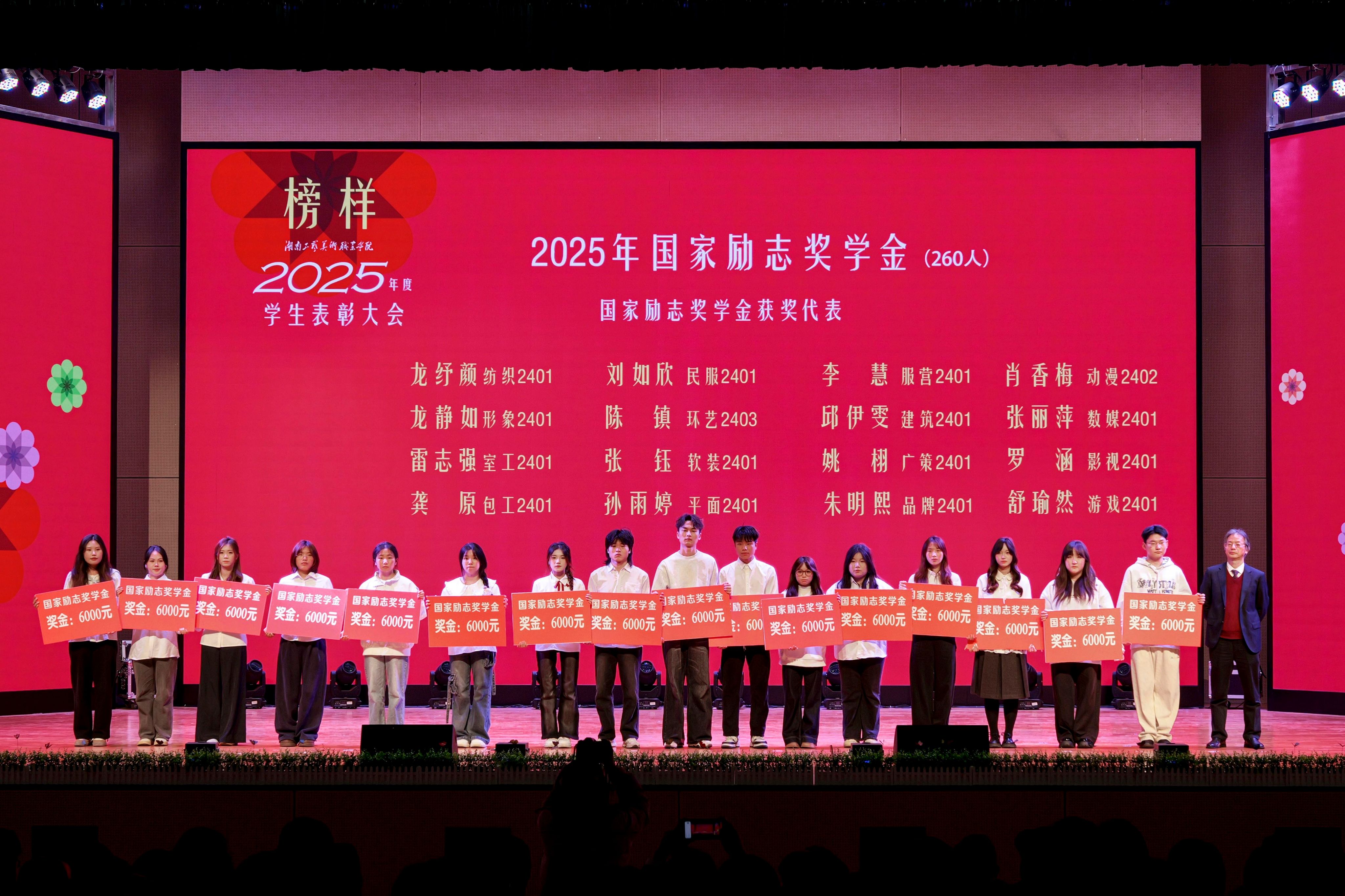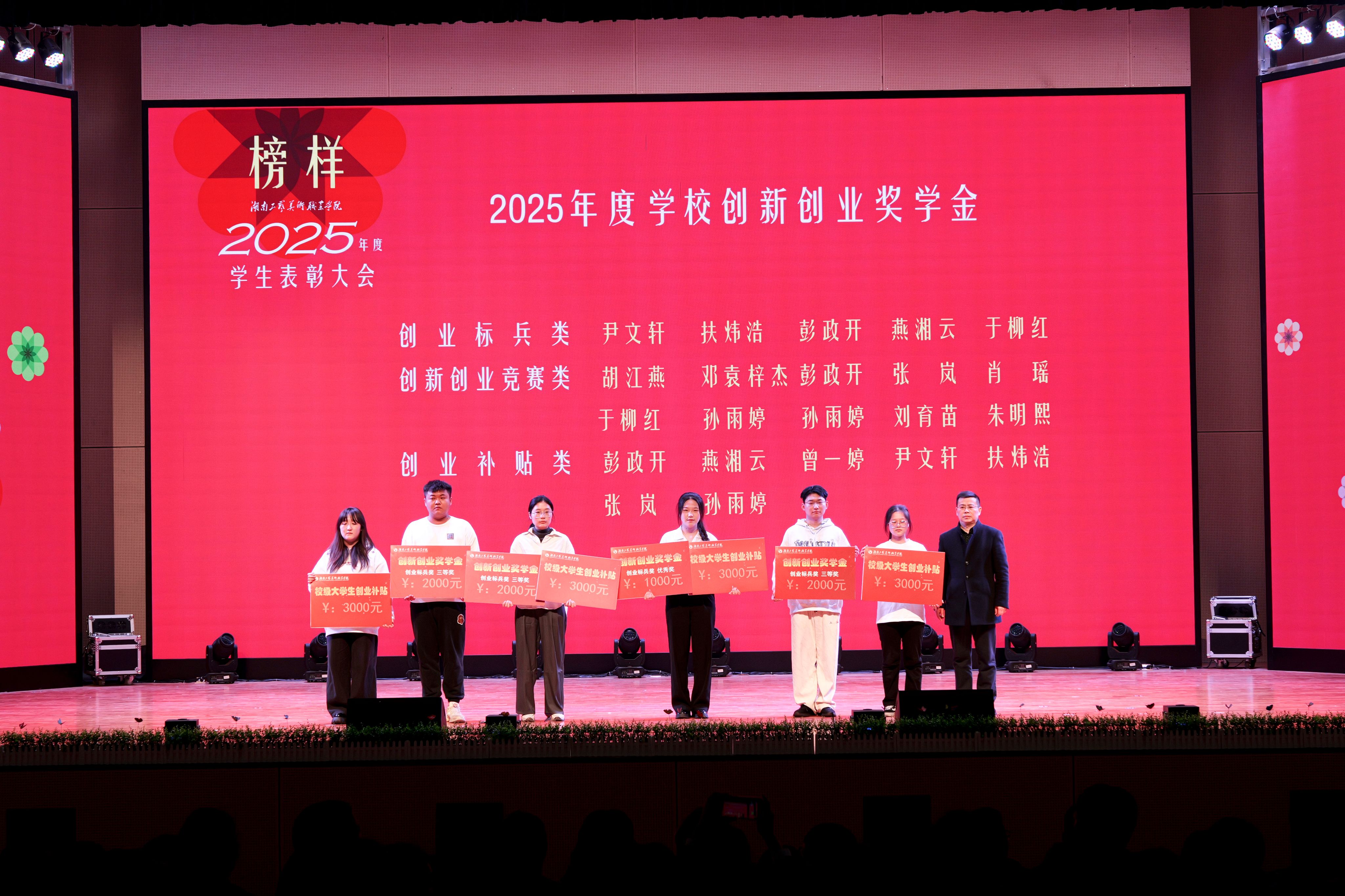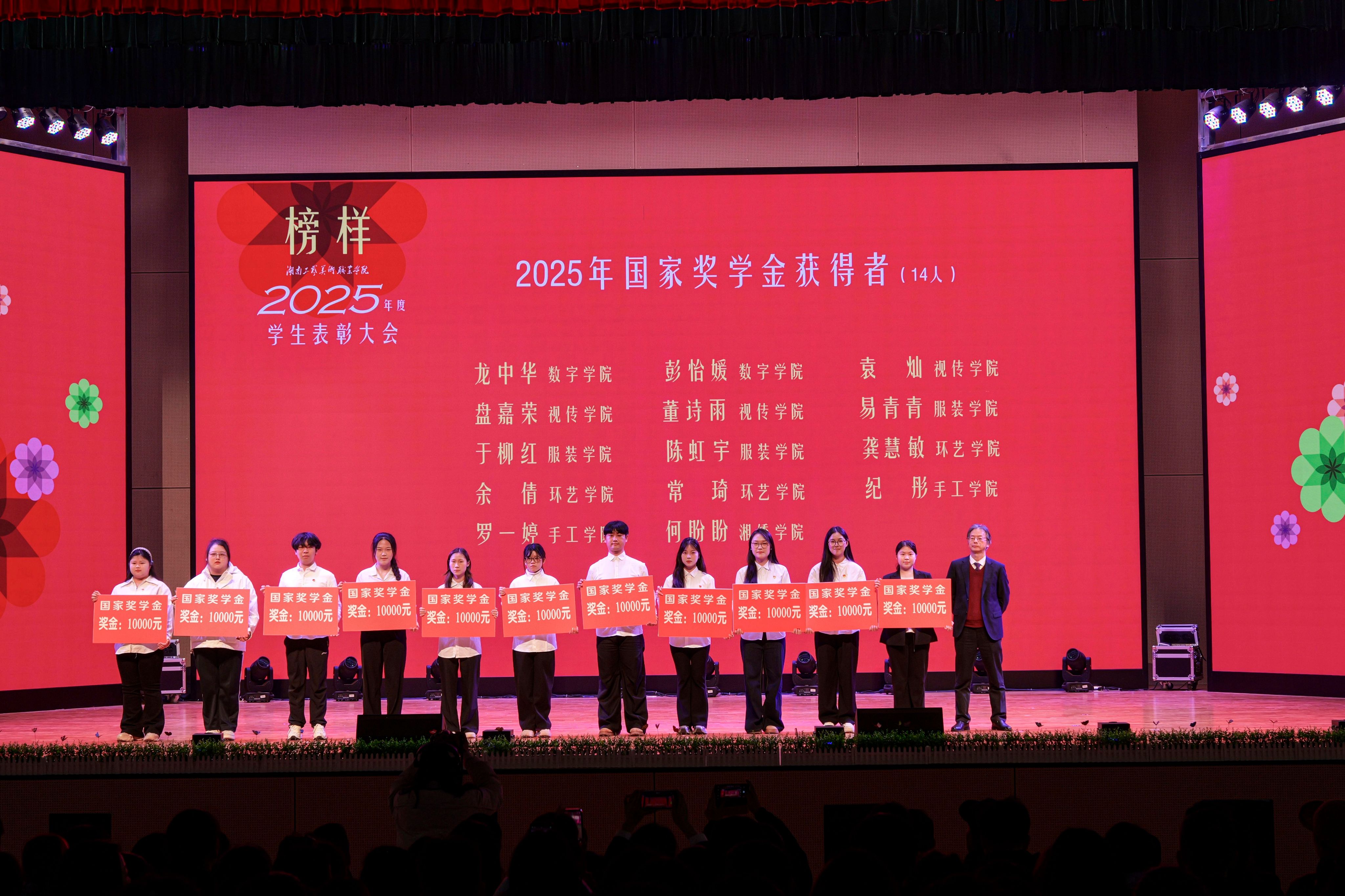 在过去的一年中,美院学子在创新创业的浪潮中敢为人先,在技能竞赛的舞台上为国争光,斩获国家级、省级奖项共计300余项。晚会现场还对2025年度学校创新创业奖学金获得者、国家级技能竞赛获奖者及优秀班集体进行了集中表彰。台上熠熠生辉的奖牌,台下雷鸣般不息的热烈掌声,共同构成了对奋斗青春的最高礼赞。
