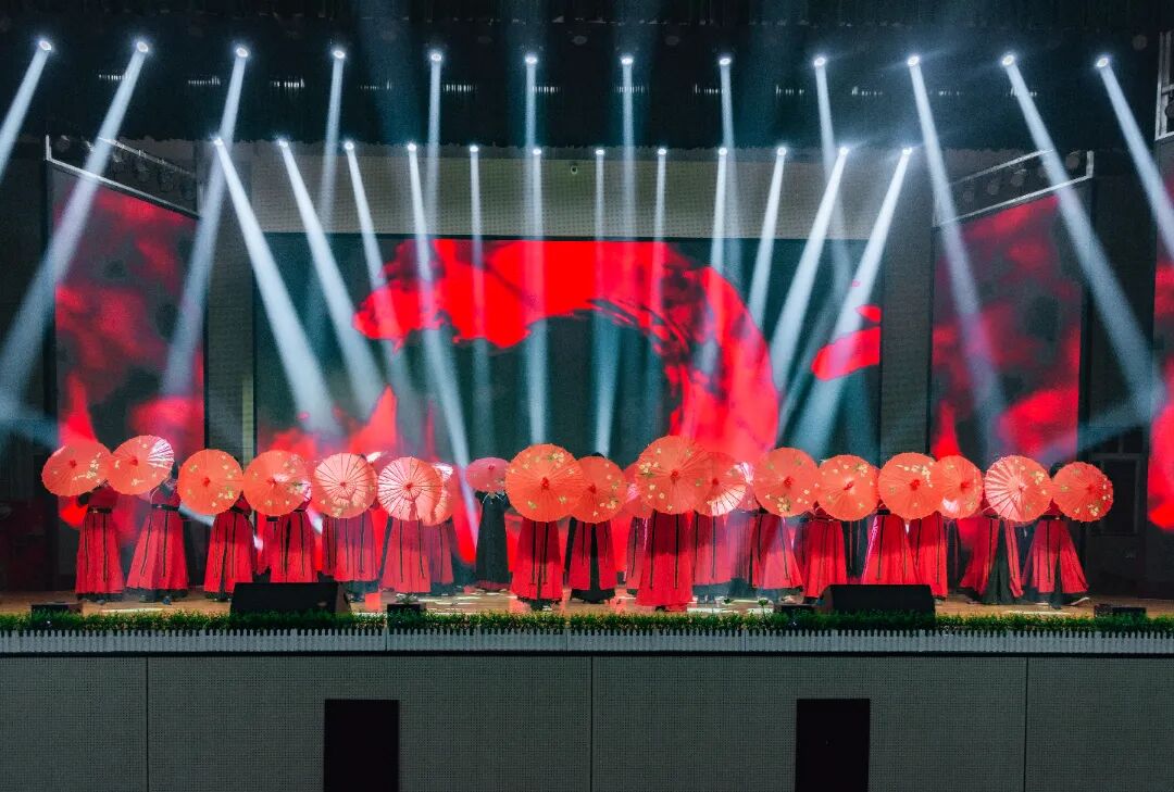 视觉传播设计学院的伞秀《界》带来哲思与美感,服装学院与汉服协会联袂奉上的服装秀《鎏光岁月》则是一场行走的时尚与文化盛宴。最终,晚会在手工艺术学院气势恢宏的歌伴舞《爱我中华》中达到高潮,激昂的旋律与深情演绎,凝聚起全体美院人对伟大祖国的无限热爱与美好祝福。