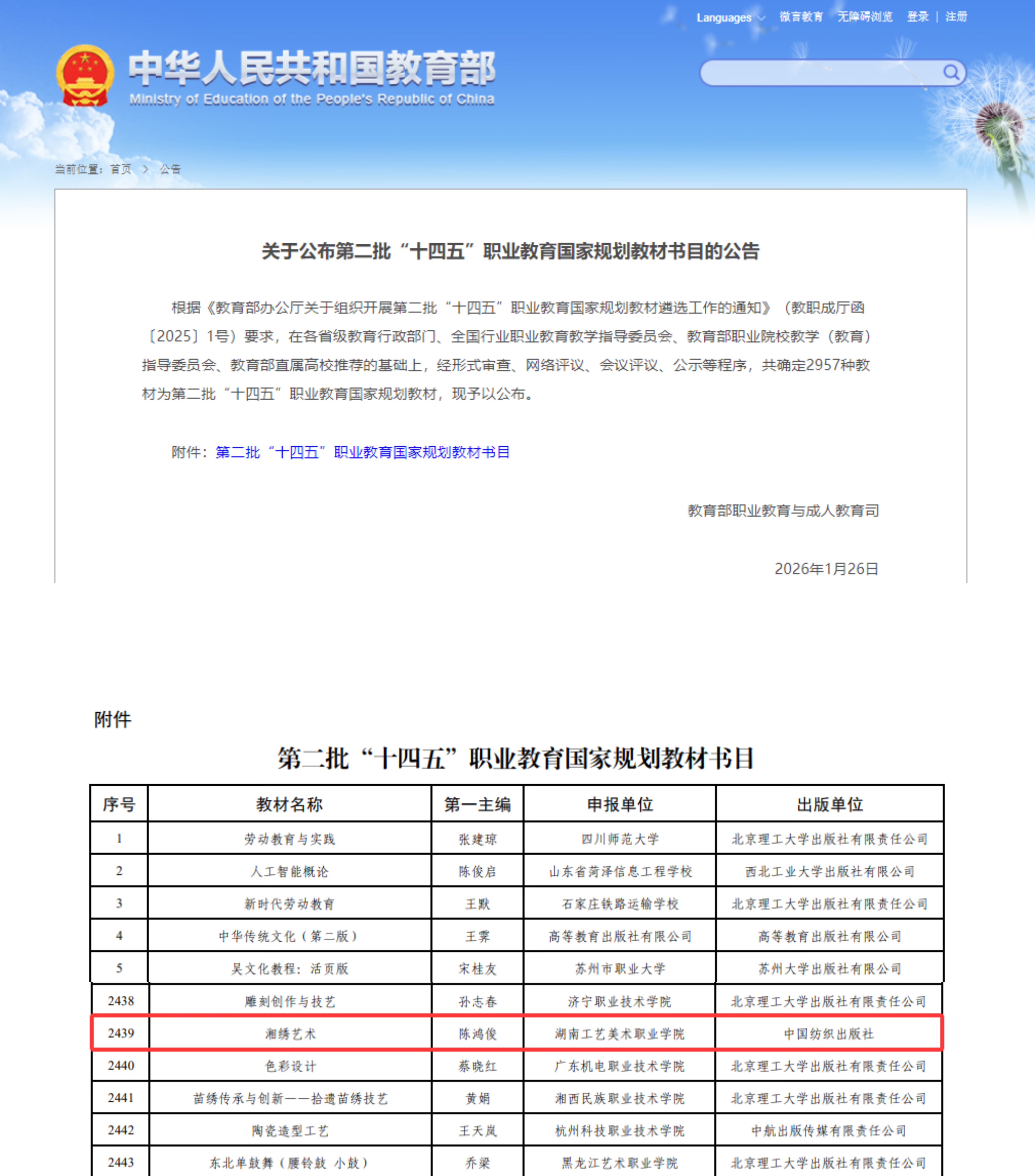 2026年1月26日,教育部正式发布《关于公布第二批“十四五”职业教育国家规划教材书目的公告》,由亚洲色欲色欲大片WWW无码-少妇邻居内射在线-色翁荡息又大又硬又粗又视频图片-国产精品毛片一区二区三区16-国语自产拍大学生在线观看陈鸿俊、唐利群两位教授主编的《湘绣艺术》教材成功入选。这一成果标志着学院在湘绣非...【详细信息】