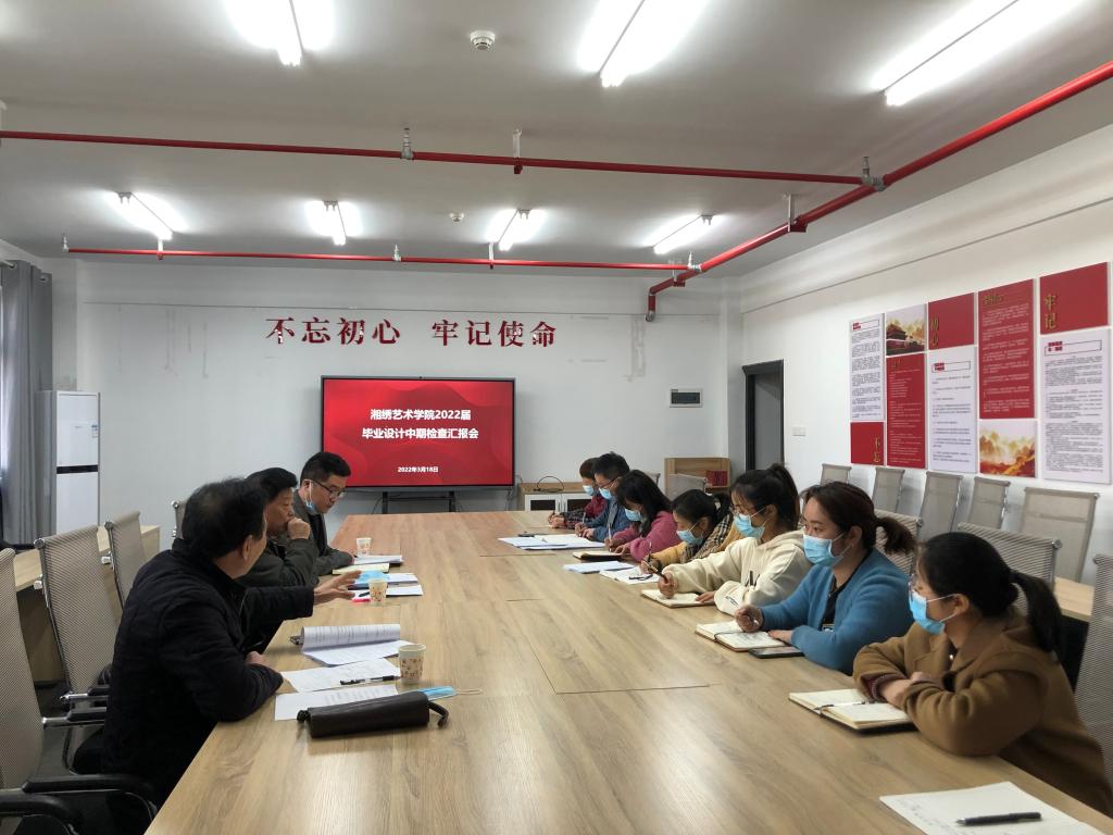 督导室李碧高、阳端科对我院毕业设计推进工作给予了高度好评,赞扬湘绣艺术学院教师工作扎实,责任心强,集体荣誉感强;毕业设计选题丰富多样,符合时代特征;最后两位教授提出了两点要求:一是注重毕业设计过程管理,各类材料整理齐全;二是针对毕业设计工作要开展专题研讨,保证毕业设计相关材料的规范,确保毕业设计的各项工作高效推进。