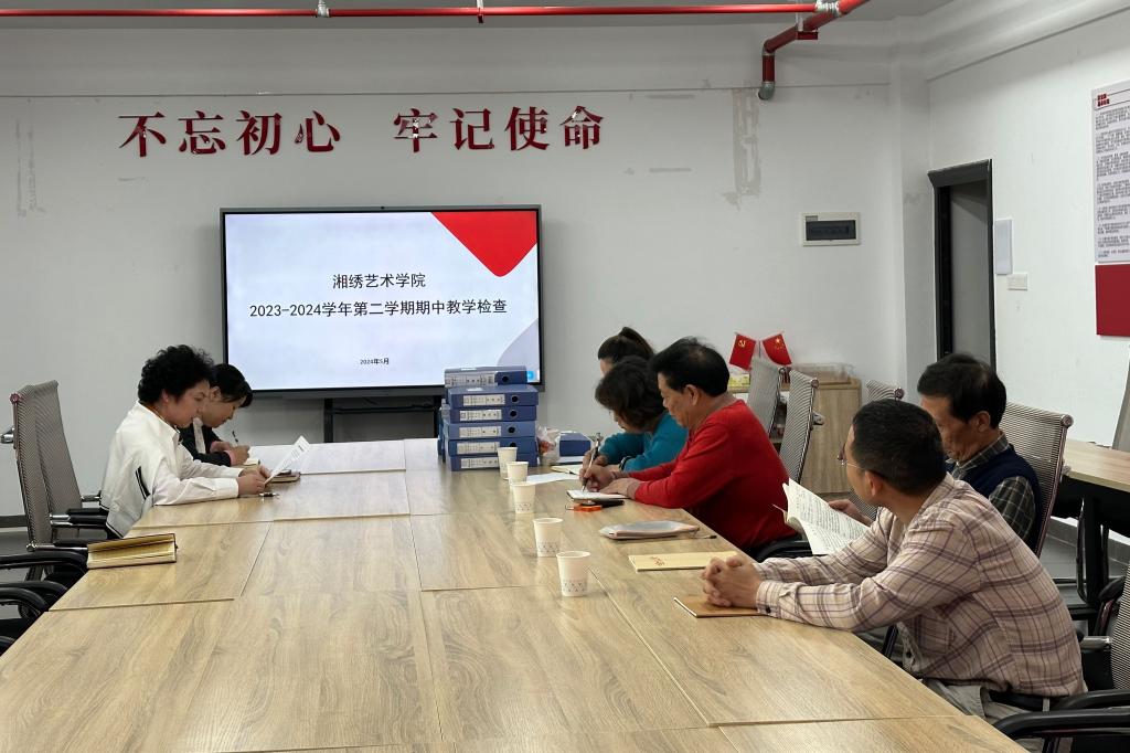 首先,唐利群就湘绣艺术学院本学期常规教学、2021级学生岗位实习及毕业设计等相关工作的开展情况进行了汇报。随后,各督导对学院本学期已结课的《湘绣简史》《高端绣品制作》《平色构成》等课程的结课材料、教研室教研活动记录、部门教学例会会议记录等进行了逐一检查,并对检查情况进行了详细反馈。督导们对湘绣艺术学院的常规教学工作给予了高度肯定,认为系部日常教学管控扎实到位,各项教学材料完善规范,教研教改活动高质高效。最后,督导们对学院今后如何深耕教学内涵建设提出了意见和建议。
