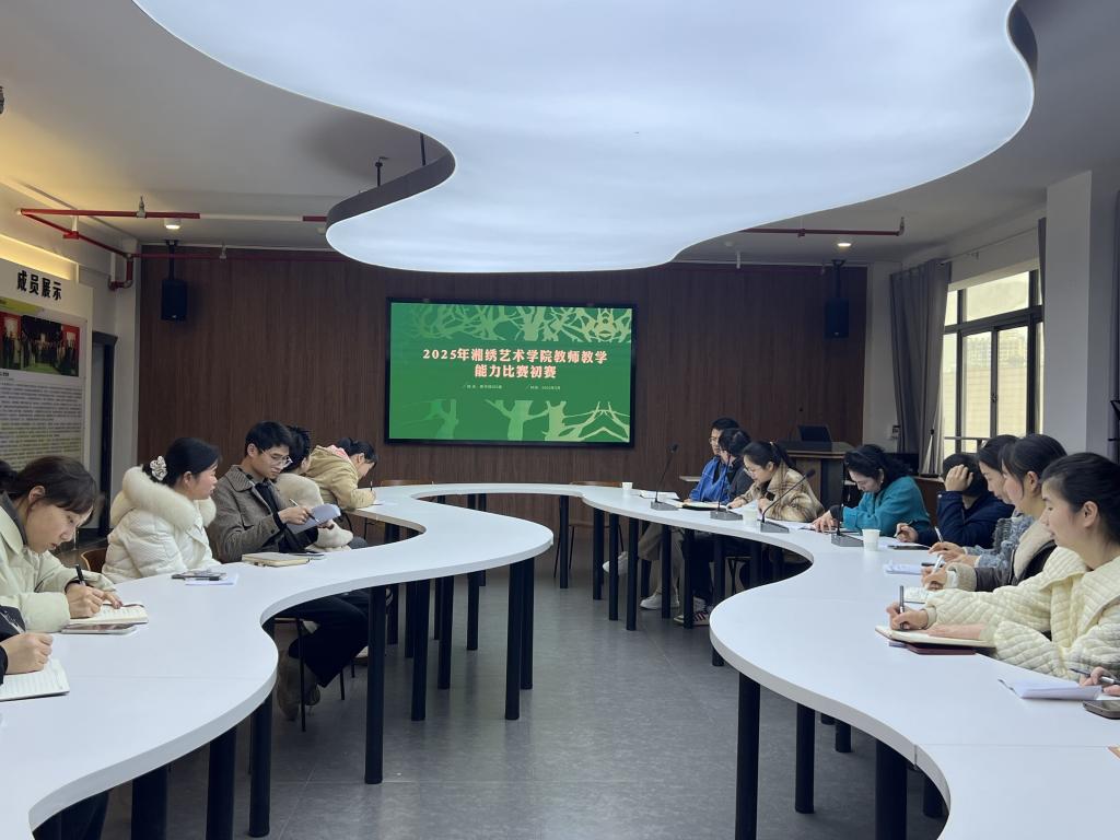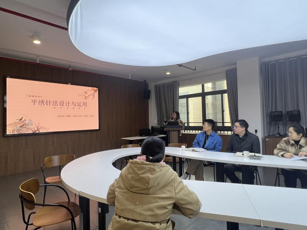 为深化教育教学改革,提升教师教学创新能力,湘绣艺术学院于3月11日下午在思美楼304举行2025年湘绣艺术学院教师教学能力比赛。此次比赛由教务处督导室督导陈振伟主任,手工艺术学院副院长王飞、副院长胡毓轩,湘绣艺术学院院长兼党总支书记唐利群担任比赛评委。湘绣艺术学院副院长谢文波主持本次比赛,全体刺绣老师与设计老师、教务办老师均观摩了此次比赛,比赛分为汇报展示和答辩两个环节。