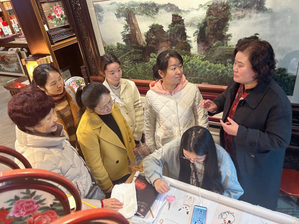 随后,老师们来到学生工作岗位,关切询问他们在工作中的困难和收获。学生们纷纷表示,实习不仅将课堂上学到的知识应用到了实际操作中,更深刻体会到了传统刺绣工艺的魅力与价值,也明确了自己未来的职业发展方向。