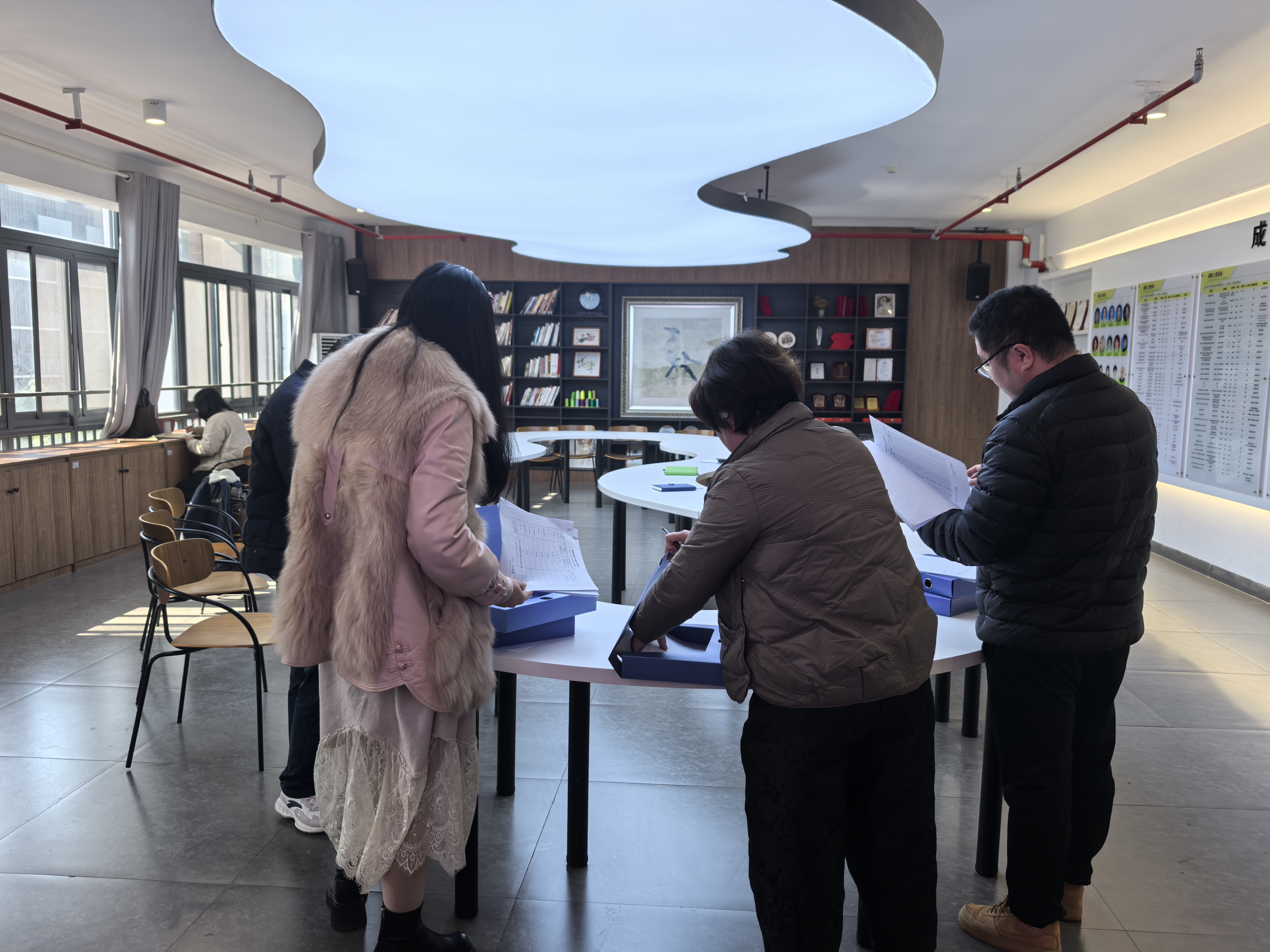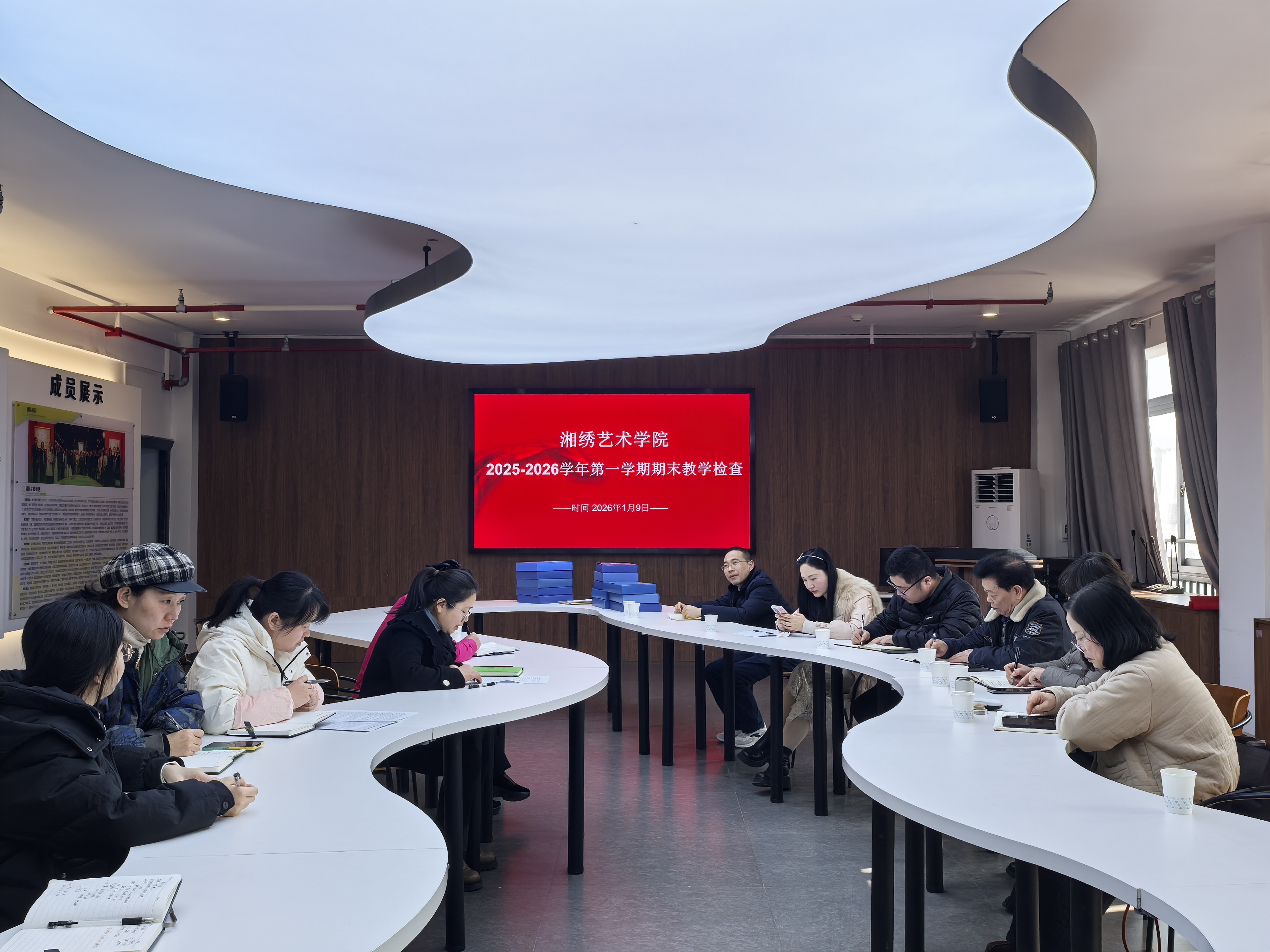 2026年1月9日,学校教务处科长亓路路,督导室符燕津、李碧高、刘芳、陈振伟、曹琴一行6人赴湘绣艺术学院开展2025-2026学年第一学期期末教学检查。学院党总支书记兼院长唐利群、副院长谢文波及各教研室主任、教务干事全程参与检查。