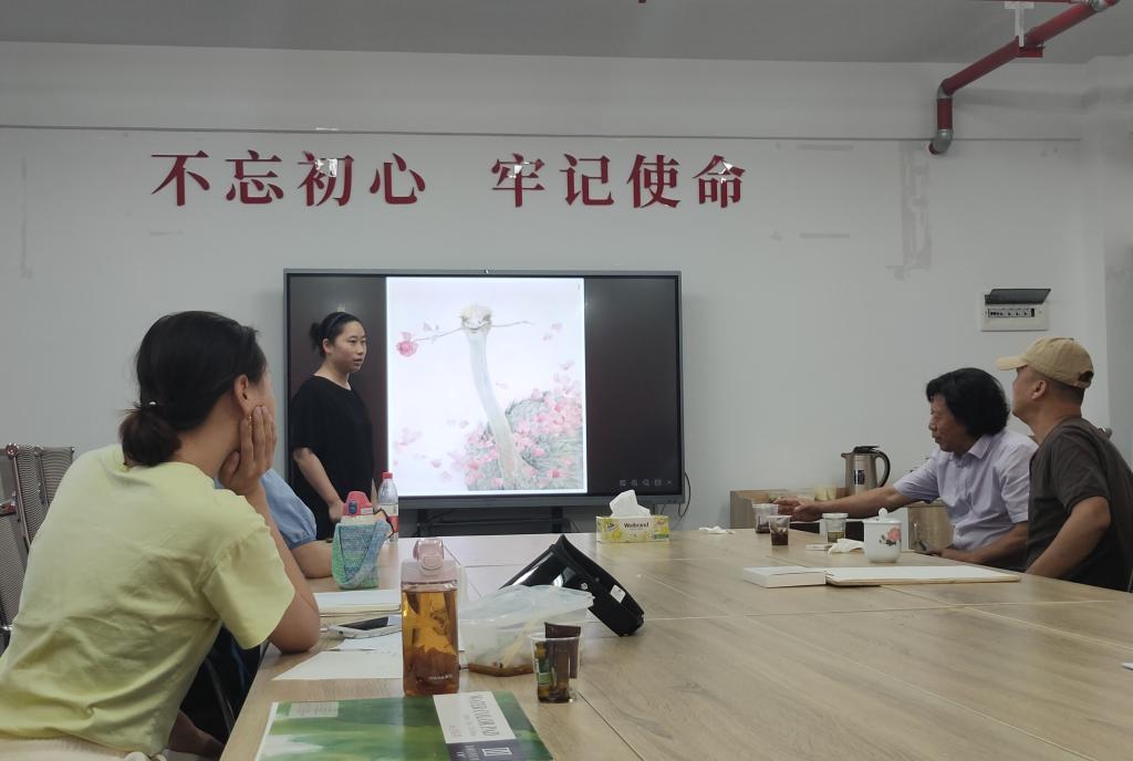 林乐成教授通过分享红色主题作品《长征路上》的创作思路和体会,从不同层次、不同方面为大家解读他对刺绣艺术创作的理解,并点评上阶段老师们的原创湘绣作品,引导参培教师对湘绣原创作品的研发方向展开积极讨论,强化了参培教师绣稿创作的思路和创作表达的方式,激发了创作兴趣,拓展了视野。