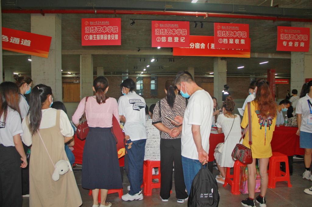 迎新现场设立了新生报到处、专业咨询处、家长休息处和党员服务台,并全天开放湘绣展厅,让前来报到的新生和家长更好地了解所学专业。报到处,入学手续“一条龙”办理,让新生报到安全有序。迎新志愿者们在学院的组织下“一对一”接待到来的新生,细心接过行李,迅速带领完成入学注册工作,并引导新生入住宿舍,使其感受到学院的温馨与热情。专业咨询处的老师们为新生和家长解答了疑惑,使他们更加坚信自己的选择。