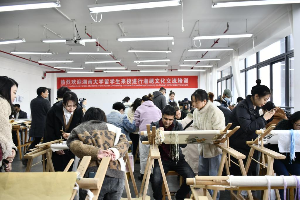 11月23日,湘绣艺术学院刺绣工作室迎来了一批不同寻常的刺绣爱好者,他们是来自湖南大学国际交流处的留学生们。阿福汗、也门、马达加斯加......虽然来自不同的国家,但他们对于湘绣这一古老的传统技艺都充满了喜爱。