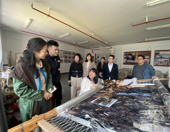 4月1日下午,大型纪录片《中国绣娘》制片人许遐、执行总导演郭刚在湖南省工业与信息化厅易霞处长、袁亚处长的陪同下来到我校进行采景、调研与座谈。湘绣艺术学院党总支书记兼院长唐利群、副书记蔡胜男、副院长吴俊作为校方代表参与了此次活动。