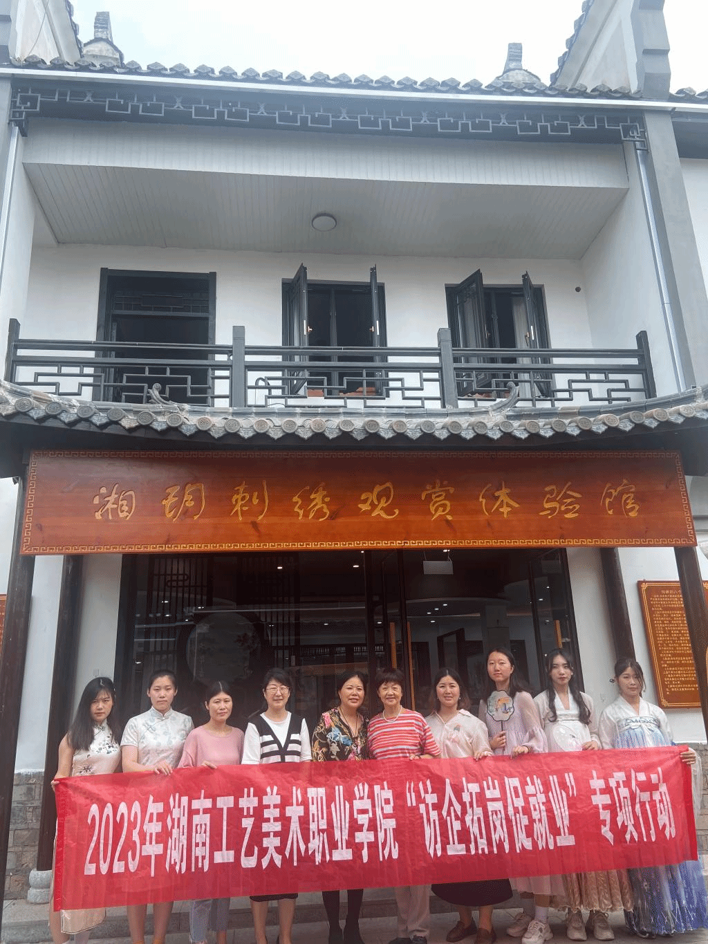 5月25日下午,湘绣艺术学院赵蓓瑛大师带队顶岗实习教师李丹、辅导员杨荣、创新创业干事黄景一行赴湘玥刺绣观赏体验馆开展顶岗实习跟踪指导与访企拓岗调研活动。湘玥刺绣观赏体验馆创办人张旭波、顶岗实习学生陪同调研。