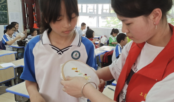 湘绣艺术学院学生志愿者指导中南小学学生刺绣