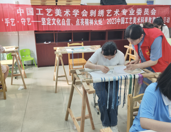 湘绣艺术学院工艺教师携大学生志愿者,于2023年6月12日走进长沙市特殊教育学校,以结对帮扶的形式持续输送刺绣技能,开展工艺美术科普教育活动,弘扬民族文化。