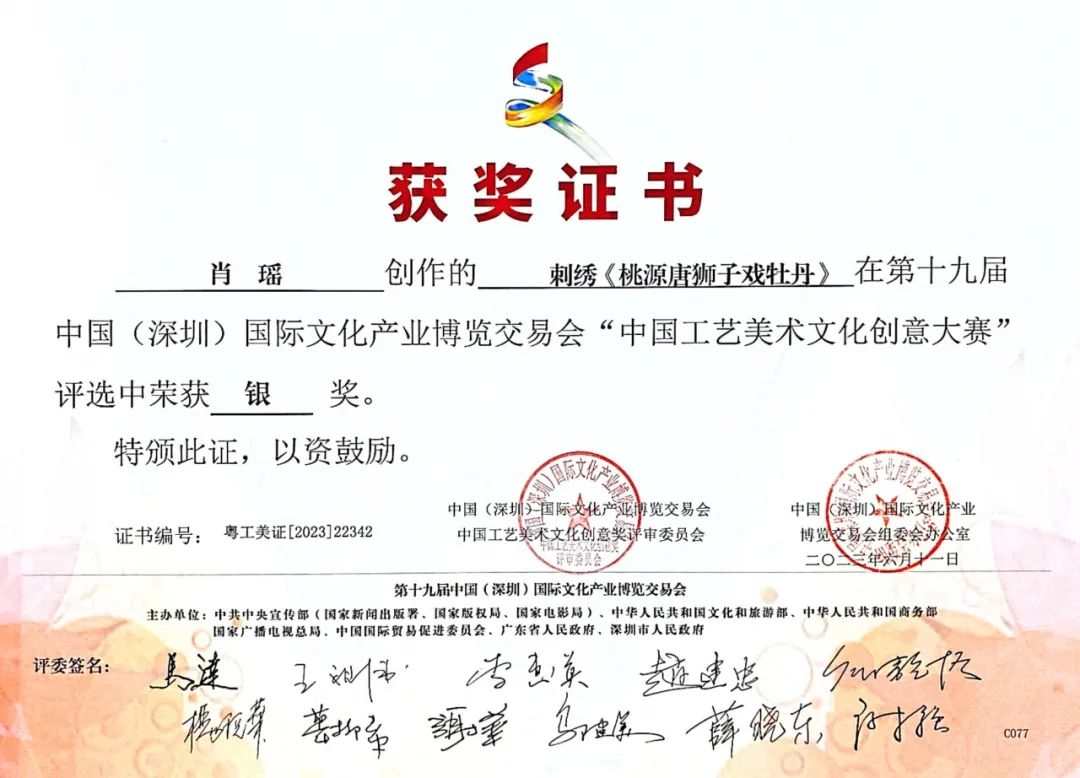 6月11日,从第十九届中国(深圳)国际文化产业博览交易会上传来好消息,亚洲色欲色欲大片WWW无码-少妇邻居内射在线-色翁荡息又大又硬又粗又视频图片-国产精品毛片一区二区三区16-国语自产拍大学生在线观看优秀毕业生、肖瑶创作的刺绣作品《桃源唐狮子戏牡丹》 荣获中国工艺美术文化创意大赛银奖。