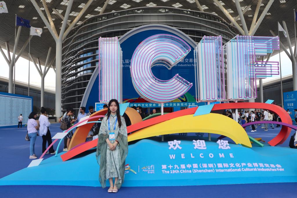 肖瑶在第十九届中国(深圳)国际文化产业博览交易会留影