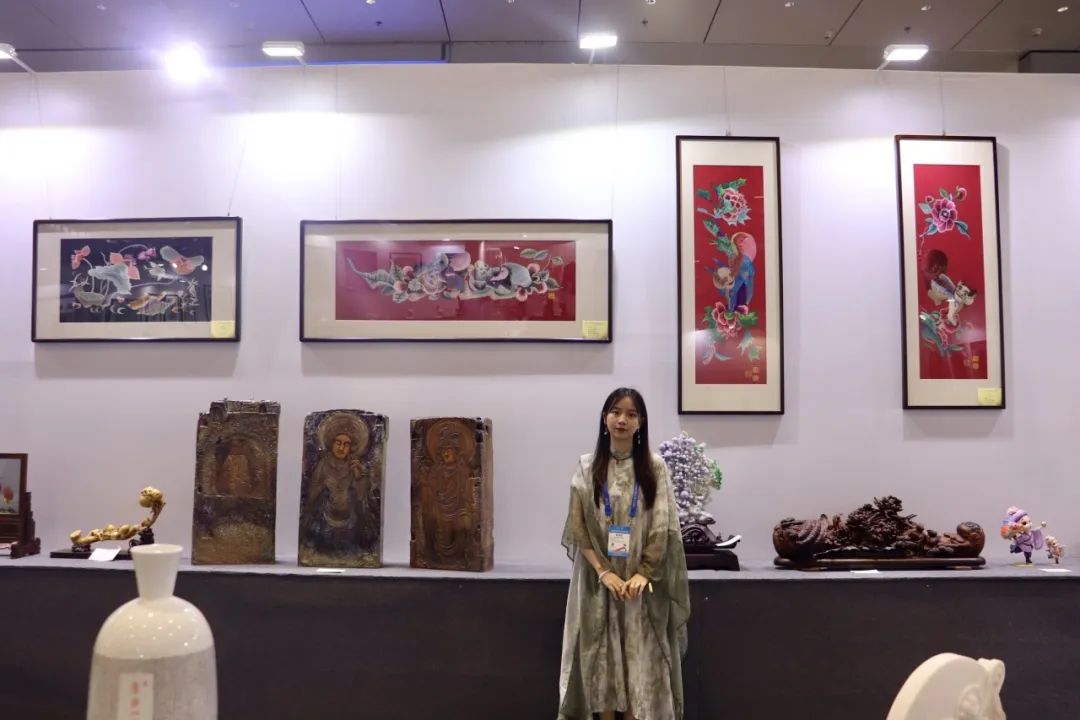 第十九届中国(深圳)国际文化产业博览交易会由中共中央宣传部(国家新闻出版署、国家版权局、国家电影局)、文化和旅游部、商务部、国家广播电视总局、中国贸促会、广东省政府和深圳市政府联合主办。除国内3596个政府组团、企业和机构参展外,还有50多个国家和地区,300多家海外展商参展。为期5天的展出主会场有5个展馆,并设立64个分会场。非遗·工艺美术·艺术设计馆内,“百名中国工艺美术大师作品联展”呈现了一场工艺美术的盛宴。肖瑶有4件非遗作品入选中国工艺美术文化创意大赛暨广东工艺美术精品展。