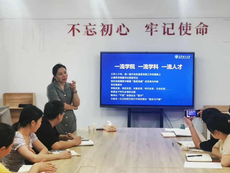 7月11日,湘绣艺术学院邀请长沙理工大学经济与管理学院党委书记丁丹来校,作了题为《实功实做:二级学院“三全育人”体系构建的实践与思考》的专题讲座。学院党总支书记兼院长唐利群主持了讲座,党总支副书记蔡胜男、副院长吴俊及全体教师参加。