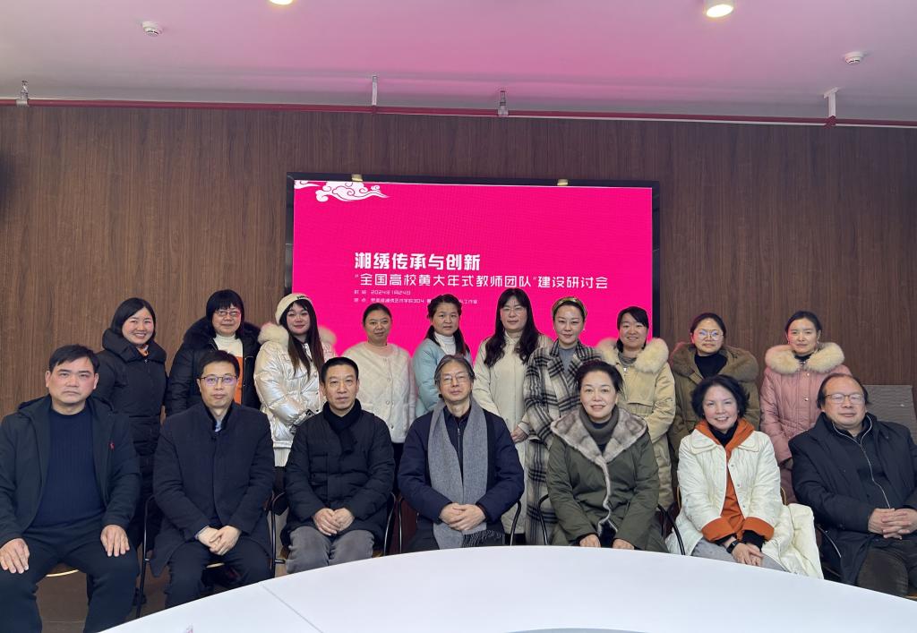 1月24日,湘绣传承与创新“全国高校黄大年式教学团队”建设研讨会在长沙基地湘绣学院召开。团队负责人学校党委书记陈鸿俊教授带领刘英武、刘光平、李艳、唐利群、谢文波、陈来国、张清、陈正英、廖瑜等共19名团队成员参加会议。会议由学校党委委员、组织人事处处长刘光平主持。