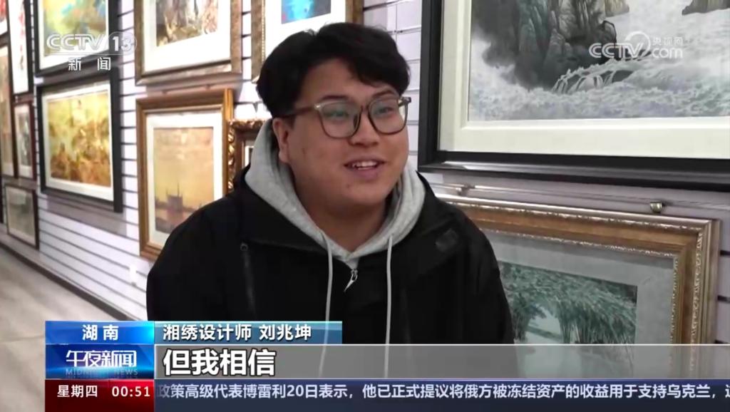 刘兆坤说:从我不知道湘绣到入职湘绣行业,都是机缘巧合,在这其中有失败、迷茫,但我相信自己会在湘绣行业里闯出一片自己的天地。