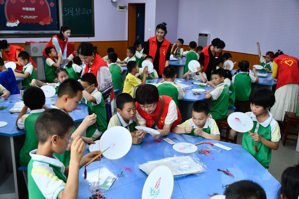 为了推进湘绣文化的传承与发展,弘扬清廉文化,5月17日,湘绣艺术学院党总支副书记蔡胜男带领湘绣学院师生10余人,走进湖南师大附中星沙实验小学,开展了以“品湘绣之美,扬清风之气”为主题的湘绣文化传播活动。