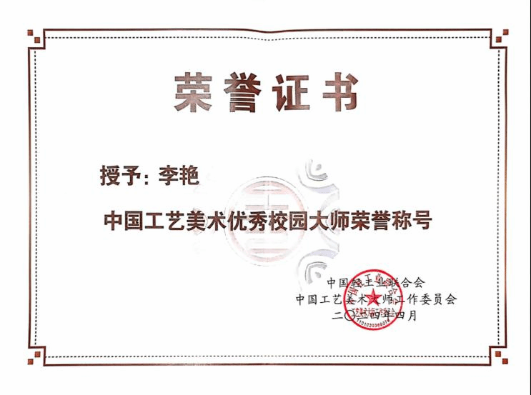 李艳大师获奖证书