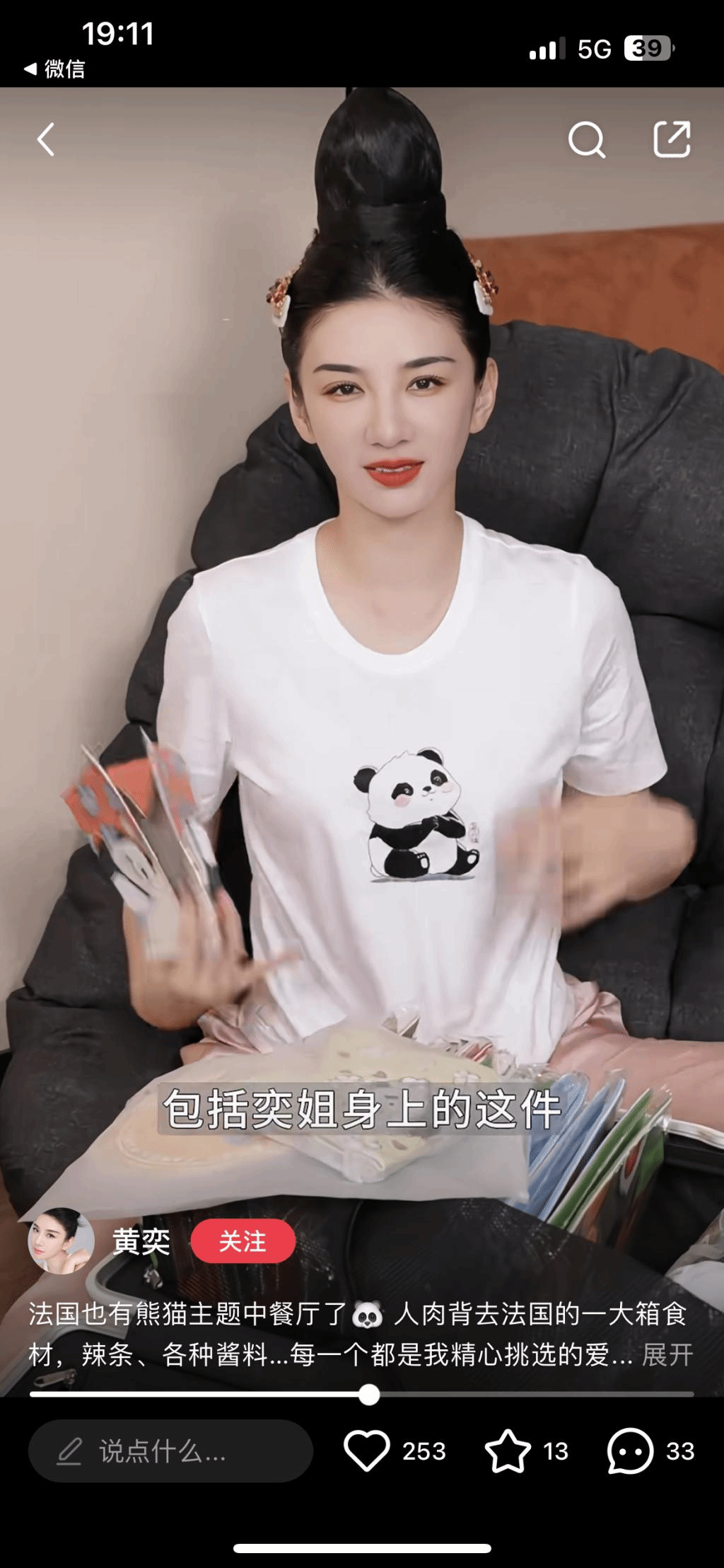 在《中餐厅》的舞台上,黄奕老师身着这款湘绣T恤,仿佛将东方美学的精髓随身携带,每一次亮相都散发出独特的文化韵味,让观众在品味美食的同时,也领略到了中华优秀传统文化的博大精深。黄奕老师更是在个人社交平台小红书上热情分享了自己的“湘绣小熊猫”,进一步激发了公众对传统文化的兴趣与探讨。