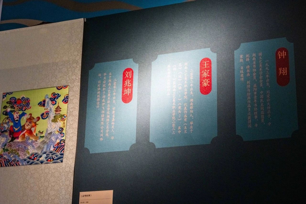 9月14日在长沙市文化旅游广电局主办,长沙市非物质文化遗产保护中心承办的“绣花郎·湘绣传承‘他’力量”专题展上,我校黄大年式教师团队指导学生创作的作品惊艳亮相,成为展会的一大亮点,吸引了众多游客驻足观赏,充分展示了我校在传承与创新非物质文化遗产方面的卓越成就,我校湘绣艺术学院优秀毕业生蒋桐万以嘉宾身份参加开幕式。