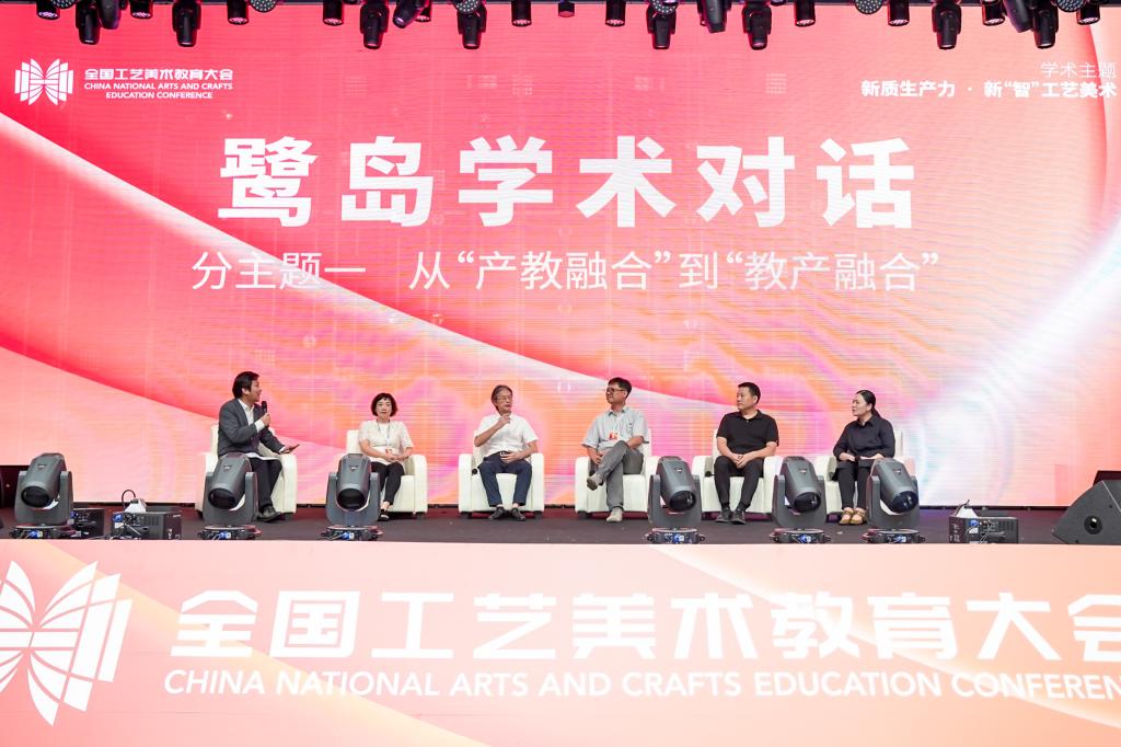 湘绣传承与创新全国高校黄大年式教师团队负责人陈鸿俊(左三)参加第二届全国工艺美术教育大会“鹭岛学术对话”