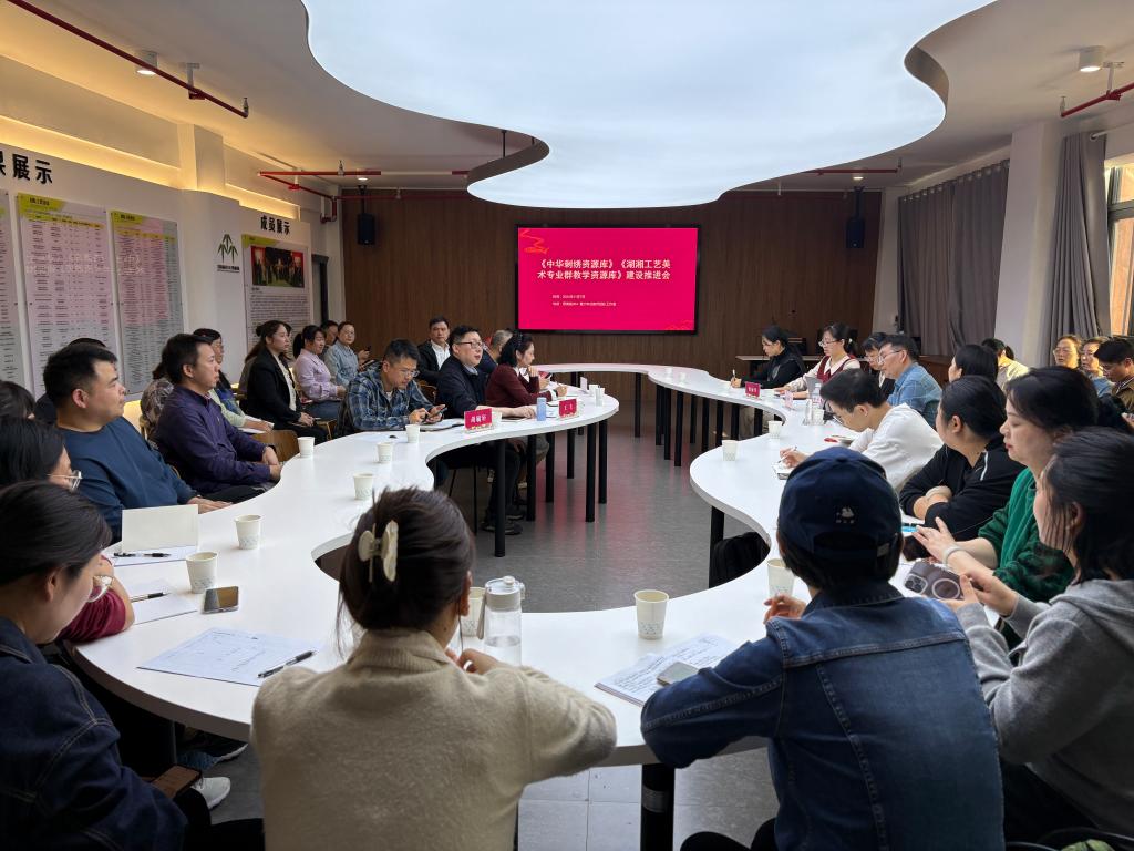 11月7日下午,刺绣设计与工艺专业群在思美楼304黄大年式教师团队工作室召开了《中华刺绣资源库》《湖湘工艺美术专业群教学资源库》建设推进会暨数字化教学资源建设与应用研讨会。中华刺绣资源库主持人、校长夏能权,双高创建与质量评价中心主任谢志杰、副主任侯丽华,中华刺绣资源库执行负责人、湘绣艺术学院党总支书记兼院长唐利群,湖湘工艺美术专业群专业教学资源库执行负责人、手工艺术学院副院长王飞,两个资源库课程建设负责人及团队成员共50余人参加了会议。会议由双高创建与质量评价中心主任谢志杰主持。