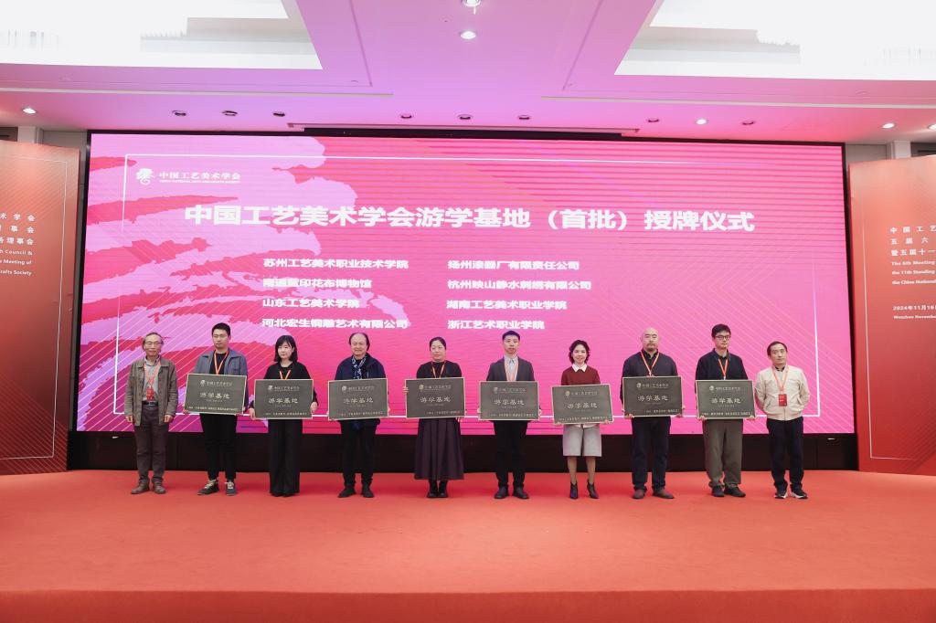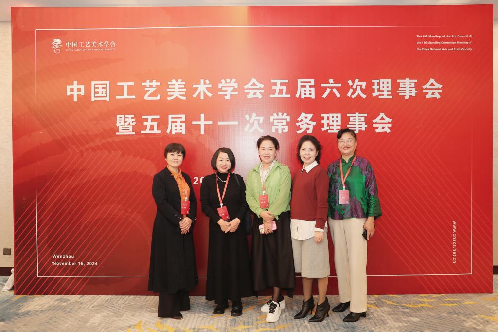 2024年11月16日,“手工艺50人论坛2024智库年会”暨中国工艺美术学会五届六次理事会在温州温德姆酒店隆重召开。浙江省经济和信息化厅二级调研员孙自强、温州市人民政府副市长王振勇及有关部门领导和来自全国330余名代表出席了本次会议。会议由中国工艺美术学会党委书记、理事长才大颖主持。中国工艺美术学会刺绣艺术专业委员会主任李艳、常务副主任林霞、副主任孟德芝、毕红,秘书长唐利群及副秘书长金家虹受邀参加了此次会议。