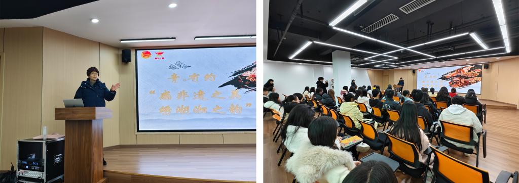 活动当天,湘绣艺术学院副院长谢文波亲自带队,率领一支由九名师生组成的志愿者科普团队。此次活动特别邀请了学院杰出的高级工艺美术师、省级刺绣大师赵蓓瑛老师,为湖南劳动人事职业学院的师生们带来了一场“绣针下的成长,责任下的担当”专题讲座。赵老师深情地阐述,湘绣对她而言,已超越日常,成为她身份不可或缺的一部分。讲座内容深刻且引人入胜,既挖掘了湘绣艺术的历史根源,又鲜活地呈现了其卓越的工艺之美,成功激发了在场学生对湘绣深厚文化底蕴的浓厚兴趣。