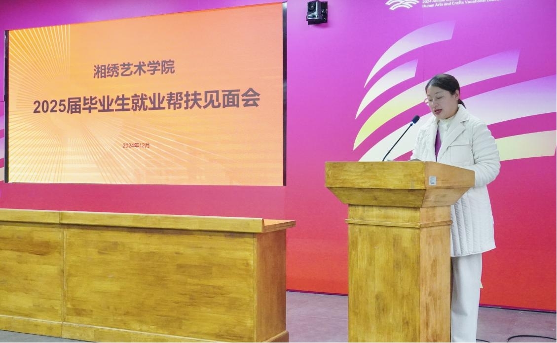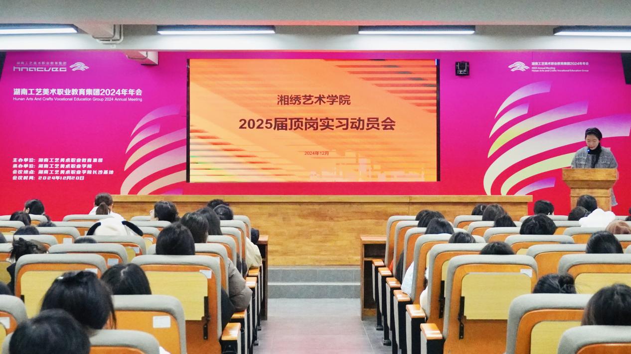 12月27日,湘绣艺术学院在长沙基地综合办3楼会议室召开了刺绣设计与工艺专业2022级学生岗位实习动员会。湘绣艺术学院党总支书记兼院长唐利群、副书记蔡胜男、2022级岗位实习指导教师、湘绣艺术学院全体教师、2022级全体学生参会。会议由李利华老师主持。