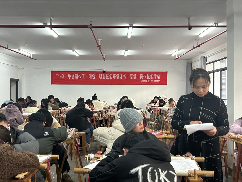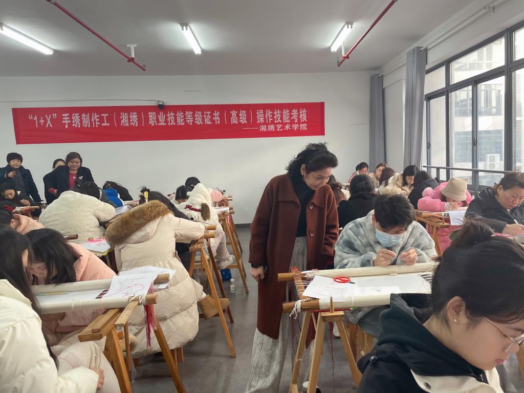 此次考核是学院深化产教融合、提升教育教学质量和学生就业能力的重要举措。未来,学院将继续秉持“以赛促学、以考促教”的理念,为湘绣行业培养更多高素质、高技能的复合型人才。
