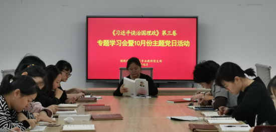 本次活动主要围绕《习近平谈治国理政》第三卷展开学习研讨。组织纪检委员聂媛集中收缴了10月份党费后,支部书记谢文波领学了《中国共产党章程》第一章、《决胜全面建成小康社会,夺取新时代中国特色社会主义伟大胜利》。随后,党员们对于所学内容展开了激烈的研讨。刘艳冰说到,作为一名党员教师,在传授学生湘绣技艺时,我们应该贯彻创新、协调、绿色、开放、共享的发展理念,创新刺绣技艺,弘扬民族文化,为夺取新时代中国特色社会主义伟大胜利出一份力。杨文老师说,我们应该更加坚定信息、勇于担当,向着宏伟目标奋勇前进。