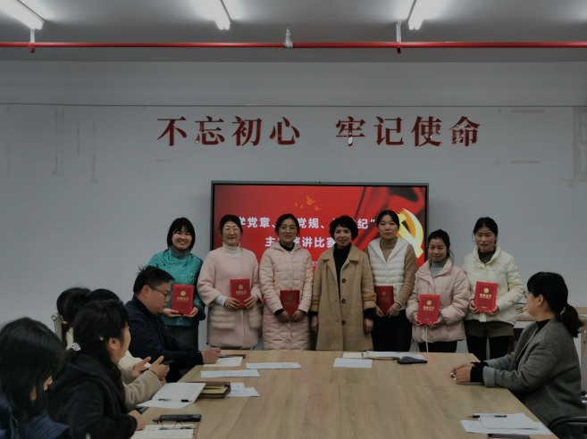 参赛的6名选手经过精心准备,他们紧扣党章、党规、党纪,结合各自岗位实际,以朴实的语言、鲜活的案例、真挚的情感,抒发了对刺绣教育事业的热爱、对学生成长成才的关爱,诠释了师者的初心、使命和担当。经过紧张的角逐,刘艳冰获得一等奖,李丹、杨荣获得二等奖,石婷、聂媛、毛俏丽获得三等奖。