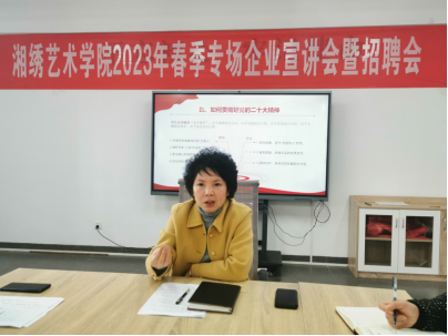唐利群以《深入学习贯彻党的二十大精神,争做新时代大国工匠》为题,从新时代十年的伟大变革出发,阐述了党的二十大的重要意义,解读了党的二十大报告中对教育的主要论述,明确了当前学院师生的责任与担当等,给学院师生上了一堂别开生面、独具一格的党课。课上,她勉励全体教师要乐做学生健康成长的“引路人”,做好学生“三观”形成的“导航者”,争当潜心新湘绣的“四有”好老师,甘为学校“建高升本”的“孺子牛”;学生党员要带头坚守“非遗传人”梦想,练就扎实的专业技能,争做学院发展的主力军。