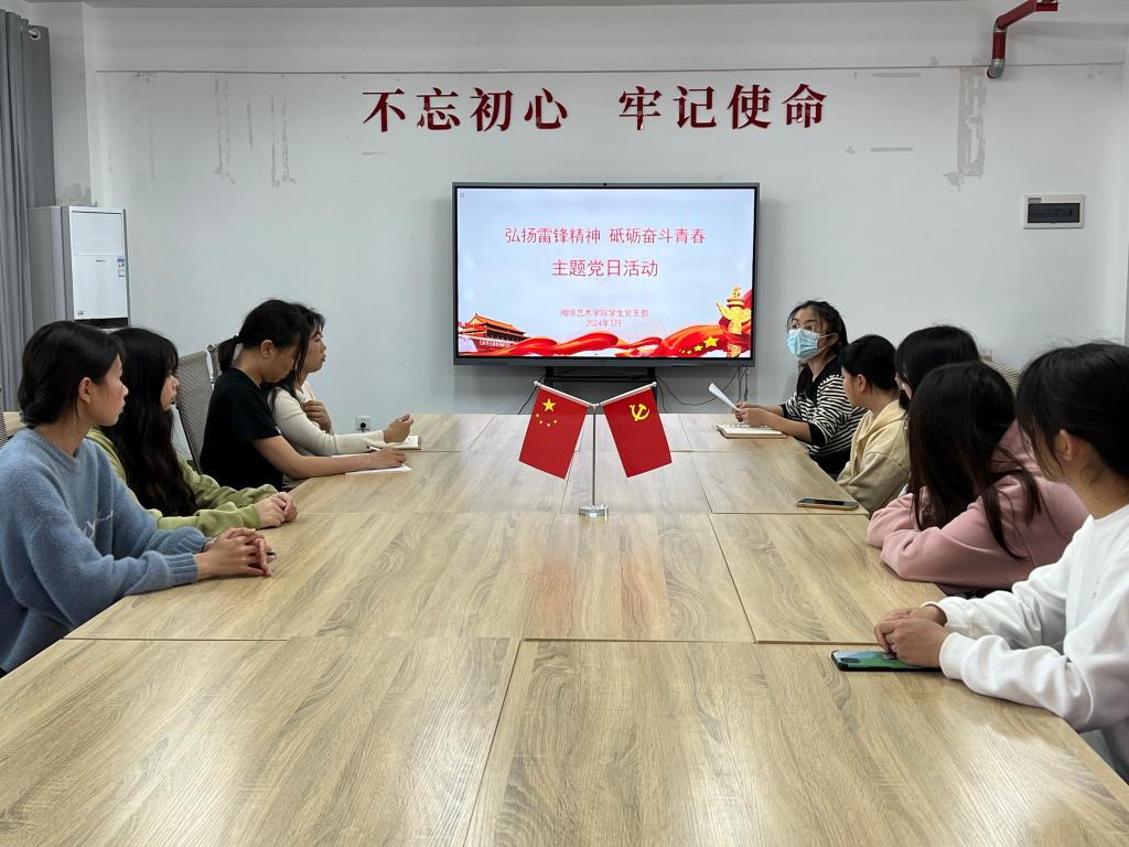 3月26日,湘绣艺术学院学生党支部以“弘扬雷锋精神 砥砺奋斗青春”为主题,通过线上和线下相结合的方式开展2024年3月份“一月一课一片一实践”主题党日活动。