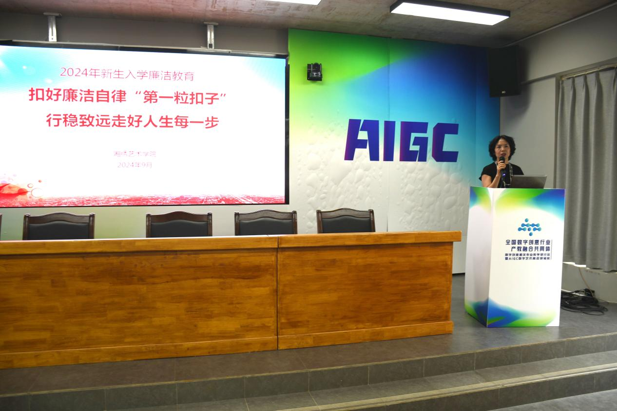9月14日,湘绣艺术学院党总支书记、院长唐利群以《扣好廉洁自律“第一粒扣子”,行稳致远走好人生每一步》为题,在办公楼会议室为2024级全体新生上了一堂廉洁教育课,引导青年学生扣好廉洁自律“第一粒扣子”。