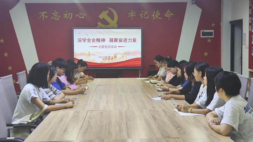 为全面深入学习领会党的二十届三中全会精神,引导支部党员和入党积极分子们把思想和行动统一到全会精神上来,9月27日,湘绣艺术学院学生党支部开展了以“深学全会精神 凝聚奋进力量”为主题的“一月一课一片一实践”主题党日活动。