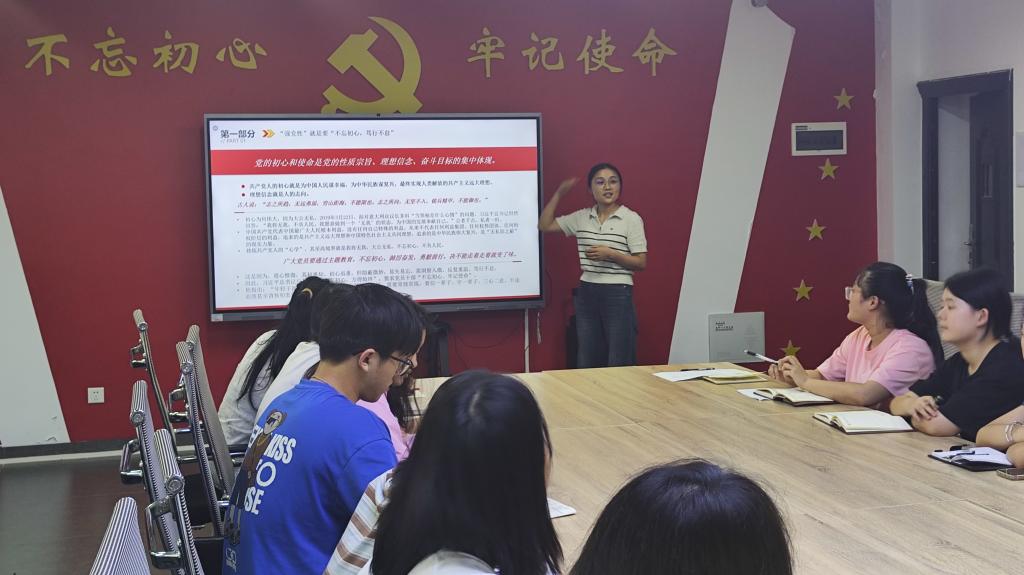 活动伊始,湛逸领学了党章第一章党员第六、七、八、九条内容,湛逸、李伟丽等党员结合党章内容谈了学习体会;随后李伟丽领学了《习近平:在党的二十届三中全会第二次全体会议上的讲话》;接着毛俏丽以《“强党性”的关键是修好共产党人的“心学”》为题讲授了党课,并带领大家集中观看纪录片《领航新征程》;最后支部党员及部分入党积极分子赴芙蓉区新龙社区图书馆开展“志愿服务”社会实践活动。
